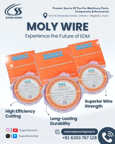 SuperSonic #MolyWire #EDMWire #EDMTechnology HighEfficiencyCutting #PrecisionCutting #ManufacturingSolutions #IndustrialQuality #GermanTechnology #SuratIndustry #SuperSonicGroup
